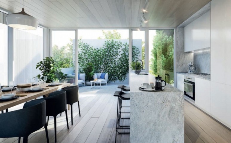 • A truly exceptional three bedroom home with three levels of luxurious spaces, meticulously detailed and suffused with lavish natural daylight. Spectacular floor to ceiling windows slide away to create seamless indoor/ outdoor living. Relax in a leafy private courtyard or terraces. Highest quality materials are showcased in every beautifully proportioned space from kitchen, living room, ensuite and bathroom.